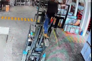 国外工人施工时竟直接站在叉车上,上下无任何防护措施!