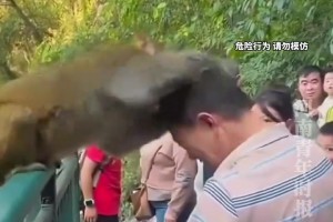 峨眉山猴子对男子又抓又咬,男子全程不反抗!!!