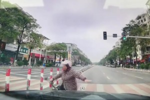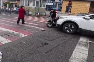 大妈骑车闯红灯,结果下一秒...