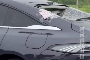 一辆后挡玻璃破碎的黑车在路上行驶,网友仔细一看肃然起敬